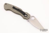 The Spyderco Para Military Model with a foliage green G-10 handle with a powdered metallurgy steel technology, CPM-D2 blade. The foliage green G-10 handle expands at the butt end, keeping the hand from slipping forward or backward. We topped the package off with a nested Compression Lock making the ultimate mid-sized survival knife. The black metal pocket clip carries tip-down. Made in Spyderco's Golden plant.
