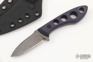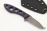 This TK-1 Wharnie by Tom Krein features an acid washed blade with .109" blade stock and .762" blade depth, full tang construction. The handle has purple G-10 scales with black linen micarta pins and an aluminum lanyard tube. Includes Kydex neck sheath with ball chain. New from maker!