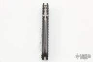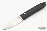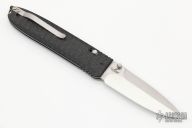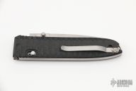 This Daghetta features a handle comprised of two parts: carbon fiber and G-10, that have been fused together in two layers. When the handle is machined with grooves through the carbon fiber, the G-10 is exposed along the sides, creating a a tough handle with a unique look.