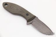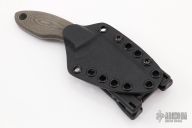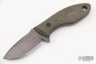 This Hydra by Tom Krein features an acid washed blade with .130" blade stock and .95" blade depth, full tang construction. The handle has green canvas micarta scales with black micarta liners and black pin with lanyard hole. Includes a kydex belt sheath. New from maker.