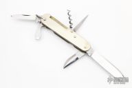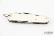 This Vintage Slipjoint by George Wostenholm features mirror finished blades with nail nicks. The handle has nickel silver covers with nickle silver pins, steel springs and a coin edged brass center liner. Has some light scratches, otherwise excellent condition for its age.