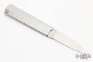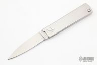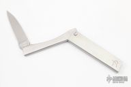 This Tri-Folder by Fred Perrin features a satin finished blade. The handle is two pieces of stainless steel the the blade folds into. Comes with a black nylon sheath. Has a couple light scratches, otherwise excellent condition.