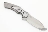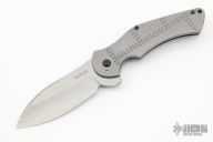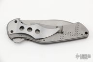 The Kershaw Junkyard Dog II by Kershaw features a fine bead blasted San Mai blade with false top edge. Easily opened via the Flipper system on the spine. The handle has bead blasted titanium scales with stainless steel tip down carry stainless steel clip. Nice detent, lockup and blade seating. Excellent condition. Comes with a zippered case.