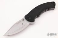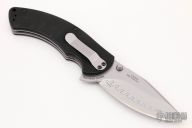 There is no knife like the Kershaw Rake model 1780CB. What makes this knife stand out against other wannabes is the composite blade with a curved belly. The curve in the belly makes the knife great for slashing and slicing. High quality D2 steel is on the cutting edge of the blade while reliable Sandvik 14C28N makes up the remainder of the blade structure. Textured G-10 overlays and steel liners are what the handle is made of. As far as performance, the Kershaw Rake is assisted opening with the help of both ambidextrous thumbstuds and a flipper on the spine. And even better, this knife was MADE IN THE USA. Discontinued. Excellent condition. This one has been signed on the blade by Tim Galyean.