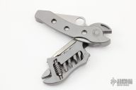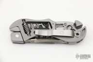 By releasing the pivot, the screwdriver and knife portion of the tool can separate from the crescent wrench allowing both tools to be used independently and/or simultaneously. The knife blade is AUS8 steel. A pocket clip & a black nylon sheath are included for easy carry.
