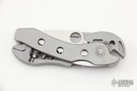 The tool also features a diamond-coated file featuring a concave, convex and flat sharpening surface with a small Phillips head on one side and a hole starter on the other end. A unique pivot pin allows the tool to rotate into an extended position that locks open creating a full-sized easy to grip screwdriver and crescent wrench. By releasing the pivot, the screwdriver and knife portion of the tool can separate from the crescent wrench allowing both tools to be used independently and/or simultaneously. AUS-8 premium stainless steel was chosen for the full-sized locking knife blade.