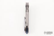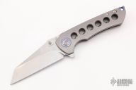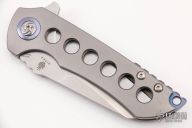 This Critical from Kizer was designed by Matthew Christensen. It features a tumble finished blade with notched thumbrest and flipper. The handle has bead blasted titanium over an anodized titanium backspacer, has anodized titanium pivot collars, and bead blasted tip up clip. Includes original zippered case and box. Excellent condition.