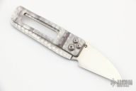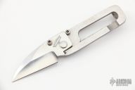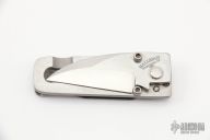The SST (Short Stubby Thing) framelock by Ed Halligan is the small version of the KISS (Keep It Super Simple) money clip knife. The knife features a satin finished chisel ground blade and a jeweled stainless steel frame and clip. Very nice work. Excellent condition.