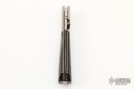 "I started making knives in 1957 and also worked with several engineering companies and continued making knives part time during this period. In 1974, I had the opportunity to join the Knifemakers guild and serve as an apprentice for two years. In the third year, I was voted in as a voting member of the Knifemakers guild, and after a few years I was elected as a director of the guild. After serving this position for several years, I was elected as the vice president of the Knifemakers guild, and served in these positions for a total of 35 years. I also have worked with Benchmade Knife Company for 24 years as a knife designer. Benchmade has manufactured many of my designs and currently continues to do so. Over the last 22 years, I have had the opportunity to teach knife making classes at the American Bladesmith School in Arkansas, and also at the Tannerhill symposium in Alabama. I have also taught many knifemakers in my shop. In 2019, I was inducted into the Knifemakers Hall of Fame at the blade show in Atlanta, Georgia." Mel Passed away in 2022.