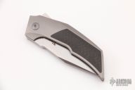 Experience Reate quality in a scaled down EDC friendly size with the Tashi Bharucha designed T3000. This T3000 model showcases a bead blasted titanium handle with Carbon Fiber inlays and a satin finished recurve blade. Ceramic bearings facilitate smooth and fast deployment of the highly effective blade. This sturdy T3000 folding knife offers distinctive Bharucha style and a pocket friendly design. Features: Low-profile blade flipper offers comfortable pocket carry and rapid one-hand deployment. Bohler M390 steel offers high corrosion and wear resistance. Titanium pocket clip for convenient tip-up carry. Green anodized titanium hardware. Comes with original box, case and papers. Excellent condition.