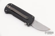 This Mini Millenium OTF Auto by Rob Dalton has a bead blasted blade. Handle is black anodized aluminum with charging tab and bead blasted tip up titanium clip. Great action. Excellent condition.
