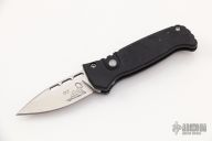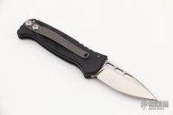 This CS (California Special) Militia side-opening automatic by Rob Dalton has a satin finish blade and milled black anodized aluminum frame. Bead blast titanium clip. Strong and fast coil-spring opening. Excellent condition.