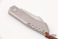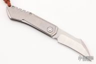 This Sparrow by JB Stout features a tumbled hawkbill, chisel ground blade with a large fuller. The handle is comprised of a stonewashed titanium frame and a steel backspring. Includes a York slip sheath. Excellent Condition.