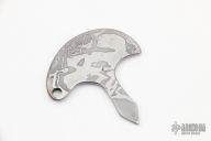This Impact tool by Master Smith Audra Draper is composed of Damascus and is designed to be attached to your key chain. Light scuffs and scratches are visible on the tool otherwise it is in good condition.
