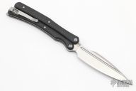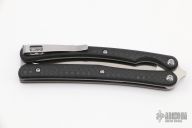 This BaliTac by Max Knives is a Grind Tactical Deisgn. It features a satin finished blade with fullers. The handles have carbon fiber scales, bead blasted titanium liners and T-latch, tip up stainless steel clip. Comes with velcro case and COA #67/150. New from maker at the 2022 Blade Show Texas.
