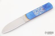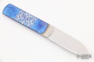 This "Air" slipjoint by Roberto Ottonello features a mirror polished 7c27 Sandvik steel blade. The handle is one piece of grade 5 titanium, and it is only .065" thick. Has half-stop. Comes with a leather slip sheath and COA. New from maker.