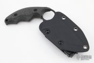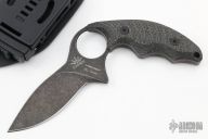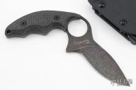 This "La Griffe De Fred" by Max Knives is an Ed Schempp Interpretation of the Fred Perrin La Griffe, it features a black tumble finished blade with .142" blade stock and 1.156" blade depth, full tang construction. The handle has antique black canvas micarta. Comes with a kydex sheath with TekLok, velcro case and COA #136/308. New from maker at the 2022 Blade Show Texas.