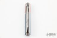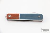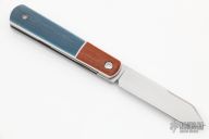 This Barlow Front Flipper Linerlock by Enrique Pena features a hand rub satin finished blade with front flipper and notched thumbrest. The handle has micarta scales with a stainless steel escutcheon, white liners, titanium frame and micarta backspacer. Excellent Condition.