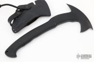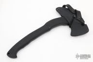 The WK RnD Sayoc Kali is intended for concealment, or as part of a lightweight bug-out bag. It is a quick handling and powerful tool that can make a difference in out of the ordinary situations. The WK RnD Axe Series is a collaborative design between Master Bladesmith Daniel Winkler and skilled Sayoc Kali martial arts trainer Rafael Kayanan. The handle design provides a standard grip position, as well as a secondary close quarter grip that was developed to emulate the feel of a handgun grip. The optional front spike is a valuable feature in combat usage. Axe Specifications Axe steel: 80CrV2 Black oxide no-glare finish. Sheath Fast draw carrier Lined Kydex® HD shockcord quick-release retention system. Excellent condition.