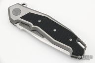 This limited edition Panache model has been outfitted with a stepped titanium handle and a satin finished TCS-XHP steel blade. This special Panache was designed by Ken Onion is and limited to just 550 pieces.  The Panache is no simpleton's knife. With a milled titanium hands with milled G-10 inlays, a sturdy frame lock, and 3.75" of sharpened TCS-XHP steel, you will be checking off your cutting to-do list with ease. The titanium backspacer, which features a lanyard hole, is jimped along with the base of the blade and the flipper tab for a sure open. The pocket flip is for deep, tip-down carry. S/N 073. Includes original box and papers. Excellent Condition.