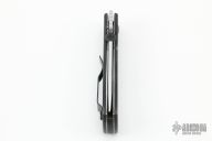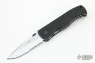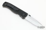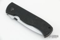 This CQC-7 by Emerson Knives has a stonewashed spear point blade with serrations and a thumbdisc. The handle has textured black G-10 scales, titanium liners, black barrel spacers and a tip up black stainless steel clip. Has some light scuffs, otherwise great condition.