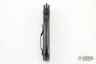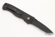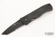 This CQC-7 by Emerson Knives has a black tanto blade with serrations and a thumbdisc. The handle has textured black G-10 scales, titanium liners, black barrel spacers and a tip up black stainless steel clip. Has some light scuffs and scratches, otherwise great functioning condition.