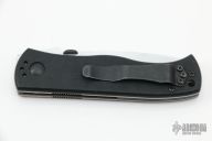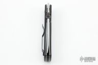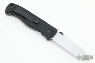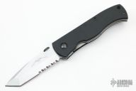 This CQC-7 by Emerson Knives has a satin finish tanto point blade with serrations and a thumbdisc. The handle has textured black G-10 scales, titanium liners, black barrel spacers and a tip up black stainless steel clip. Has some light scuffs and scratches, otherwise great functioning condition.