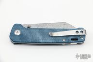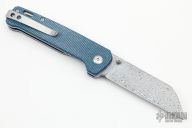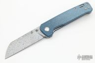 This QSP Penguin has a Damascus sheepsfoot blade with dual thumbstuds. The handle has a titanium frame with micarta scales and stainless tip up clip. Stainless hardware and lanyard hole in the base. Comes with original box, excellent condition.