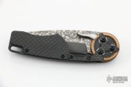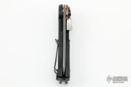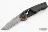 The 2021 Gearhead folding knife by Mantis Knives is the EDC counterpart to the previous Gearhead design. The "steampunk-style" Gearhead liner lock folder is equipped with a unique gear-driven pivot with one large gear, three small gears, and a thumb lever used to deploy the blade when pushed down. It features a flat ground 2.875" 62-layer Damascus blade and measures exactly seven-inches overall making it ideal for everyday carry. The handle scales are made from carbon fiber and aluminum with a stainless steel right-hand, tip-up pocket clip. The GH2028 series has a carbon fiber presentation scale and a copper-colored gear ring but it is available in a variety of styles and finishes.