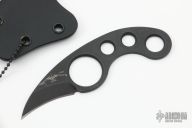 This La Griffe by Emerson Knives features a black coated chisel ground blade. The handle is skeletonized for a lighter overall weight. This knife was designed by Fred Perrin. Comes with Kydex sheath with ball chain and original box and papers. Dated 2005 and #4040. Excellent condition.
