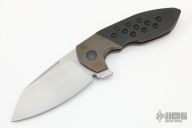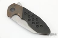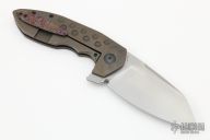 This Capitalist flipper from Custom Knife Factory features a light bead blasted blade with a false top edge. The handle features a tumbled titanium frame with orange peel finished zirconium scale and backspacer.  Timascus tip up pocket clip.  Includes padded case and COA.  Excellent Condition.