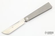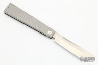 GS3 is a clean, minimal friction folder with a detent lock. This knife comes with two M390 steel blades and a case.  This knife features a satin finished blade with a milled titanium frame and steel backspacer.  Includes COA and a black leather slip sheath.  Excellent Condition.