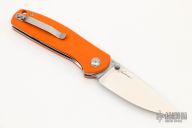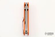 The Jasmine by Alliance Designs is a solid EDC performer, designed with Ray Laconico's distinctive minimalist design style. This model sports a satin finished blade and orange G10 scales over stainless liners.  Stonewashed stainless steel tip up pocket clip.  Comes with zippered case. Nice Detent, Lock up and blade seating. New condition.