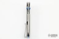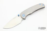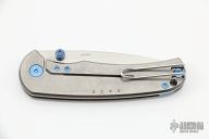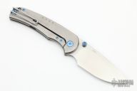 Made to mitigate corrosion with a titanium handle and a satin finish blade, The Drift holds a nominalistic modern design that is thin, lightweight, and corrosion resistant - making it ideal for an everyday carry and wet environments. Excellent condition. Comes with original box and papers. The hardware has been anodized blue by Robert Durand.