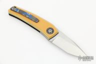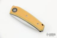 This Mantis Flipjoint by Jared Oeser features a hand rub satin finished blade with flipper. The handle has vintage Westinghouse ivory paper micarta scales with black/grey G-10 liners, zirconium pivot collars and backspace, tip up zircuti clip. Comes with a leather pocket sheath, original box, handkerchief and COA dated 3-31-21. Nice detent, action and blade seating. Has a double detent pivot. Excellent condition.