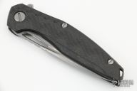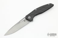 This Model 111 Gen5 by Shirogorov Knives has a tumble finished blade with thumbhole, notched thumbrest and flipper. The handle has bronze carbon fiber scales, anodized backspacer and titanium tip up clip with hidden screws, stainless steel single liner. MRBS. Dead center blade seating, excellent detent and lockup, and flips superbly. Comes with original box and papers. Knife is in excellent condition.