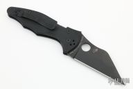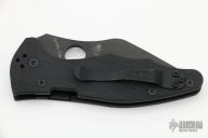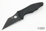 This Yojimbo 2 by Spyderco features a black finished wharncliffe blade with thumbhole. The handle has a black G-10 frame with stainless steel liners, lock is on the spine of handle. 4-way reversible stainless steel clip. Nice detent, lockup and blade seating. Comes with original box and papers. Excellent condition.