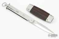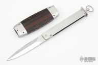 "When I was 9 years old my Dad gave me a 6 inch Rizutto with a broken spring. I can remember trying to stick a coat hanger wire into it trying to fix it but to no avail. I later took the blade out and stuck it into one of those Taiwan switchblade combs because I wanted it to work so bad but I ended up destroying both of them in the process. When I was a kid I loved going to flea markets and gun shows looking for switchblades and butterfly knives that I've always liked. Even now as an adult I love them all the more. I like most all knives but have always had a thing for the classy Italian stiletto's. Its been a blast to meet up with other collector's on the internet and also learning the mechanics from makers like Don Hall, Arlin Walker, Bill McHenry, Reese Weiland, Jerry Rados, and George Cameron to name a few. I currently reside in Ohio where I am now a full-time knifemaker with a modest machine shop. I also restored antique stiletto's professionally for antique dealers for several years before becoming a custom knifemaker."