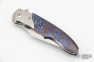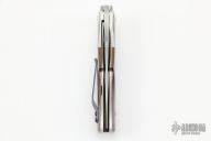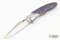 This Mini Lincoln by Wolfgang Loerchner and Patriot Bladewerks features a satin finish clip point blade with flipper. The handle is comprised of polished titanium bolsters, mokuti scales, satin finished titanium liners and backspacer. Comes with a zippered case. Nice detent, lockup and blade seating. Excellent condition.