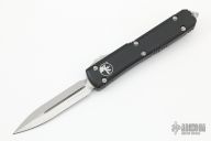 This Ultratech OTF automatic by Microtech knives features a D/E satin finished double-edged blade with a standard edge, and a black aluminum handle with blasted hardware, tip down carry. Glass breaker. S/N 183597. Dated 12/2020. Comes with original box and papers. Excellent Condition.