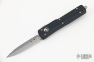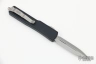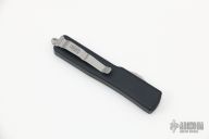This UTX-70 OTF automatic by Microtech features a 204P stonewash finished blade with a standard edge. The handle has a black aluminum frame with blasted stainless steel tip down clip. Serial number 10785 and dated 02/2020. Comes with original box and papers. Excellent condition.