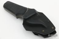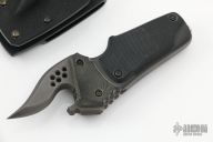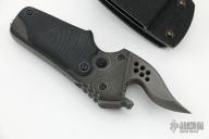This RID by Nemoto Knives features a bead blast finish spike blade, .432" blade stock, 1.928" blade depth. This knife is part of Nemoto's LLC (Low Light Combat) line and features four 6 LED ultra bright lights fitted into the handle in the middle of the blade. Full tang construction with black linen micarta bolsters, black G-10 scales and black aluminum liners. Notched thumbrest. Great feel in hand. Great work. Great concept. Comes with kydex sheath. Excellent condition.
