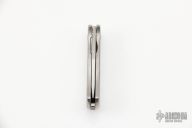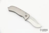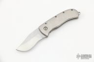 This Tiny Linerlock Folder by Eddie Baca features a satin finished blade. The handle has an orange peel finished titanium frame with an inlaid titanium liner. Nice detent, lockup and blade seating. Excellent condition.