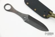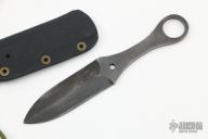 This lapel/neck dagger by Fred Perrin features a double edged blued blade with .119" blade stock and .901" blade depth. Comes with a kydex neck sheath. Has a few light scratches, otherwise excellent condition.