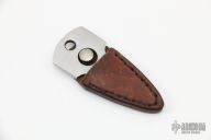 This Thumb/Lapel Dagger by Crawford Knives features a satin finished blade and handle, .119" blade stock and .625" blade depth. Comes with a brown leather sheath with a stud to hold the blade inplace.