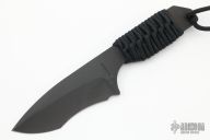 The ED EB by Mick Strider features a black blade with false top edge, .143" blade stock and 1.672" blade depth, full tang construction with black paracord wrapped handle. Comes with kydex sheath. New condition.