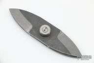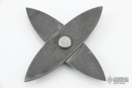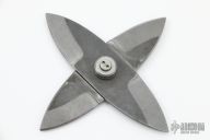This Folding 4-Point Shuriken by Blossom Blade features bead blasted chisel ground blades that pivot and lock open. Push the button and pivot them back to fit them in the black nylon sheath with belt loop. Has some light scuffs, otherwise excellent condition.