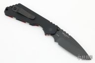 This Pro-Strider PT by Pro-Tech and Strider Knives features a black 154CM blade with a notched thumbrest. The handle has a unique micarta and black aluminum frame with stonewashed stainless steel tip up clip, abalone inlay in push button. Comes with original box and papers. New from maker at the 2022 CCKS.
