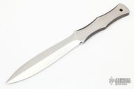 This Throwing Dagger by Harvey Draper features a mirror polished dagger style blade .254" blade stock and 1.015" blade depth, integral construction, all satin finished. Comes brown leather sheath. Excellent Condition.