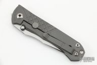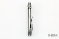 This left handed Umnumzaan from Chris Reeve features a bead blast titanium frame with a checkered pattern. Tumble finish blade with dual thumb studs and notched thumb rest. Nice lockup, detent and blade seating. Excellent condition. Comes with original box and COA dated November 24, 2020.